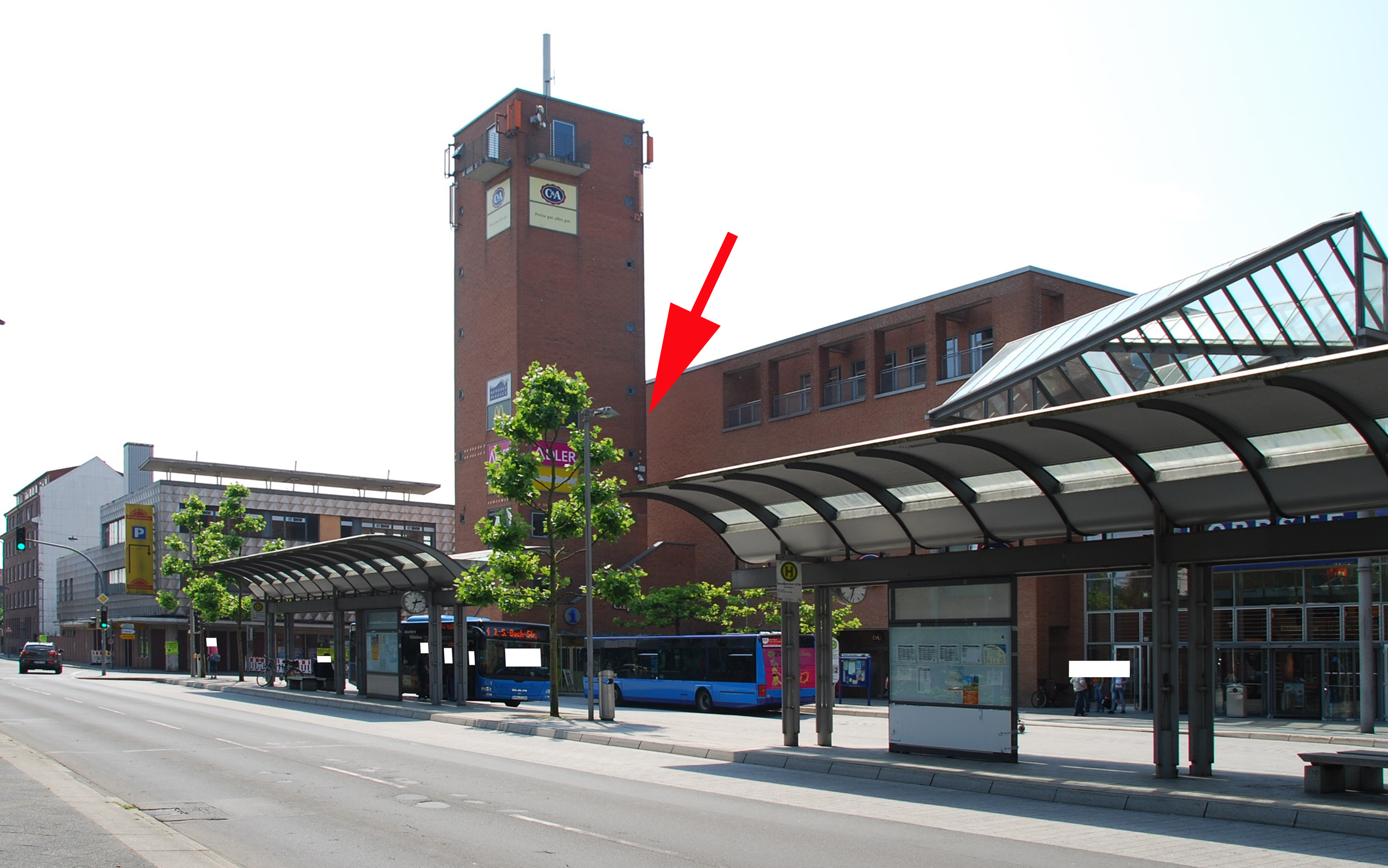 Kamerastandort Bahnhofstraße/Mozartstraße; Blickrichtung Nordseepassage, Parkhausspindel Nord